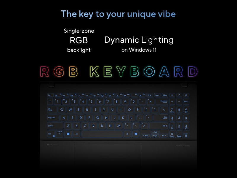 *This Asus VivoBook S14 Laptop images is for illustration purpose only. Actual image may vary.ASUS Vivobook S 14 OLED boasts a single-zone RGB backlit keyboard for customizing the backlight with stunning lighting effects that match your personality and mood. With Windows Dynamic Lighting, you can easily adjust colors, modes, and brightness levels right in Windows setting to make your keyboard stand out.