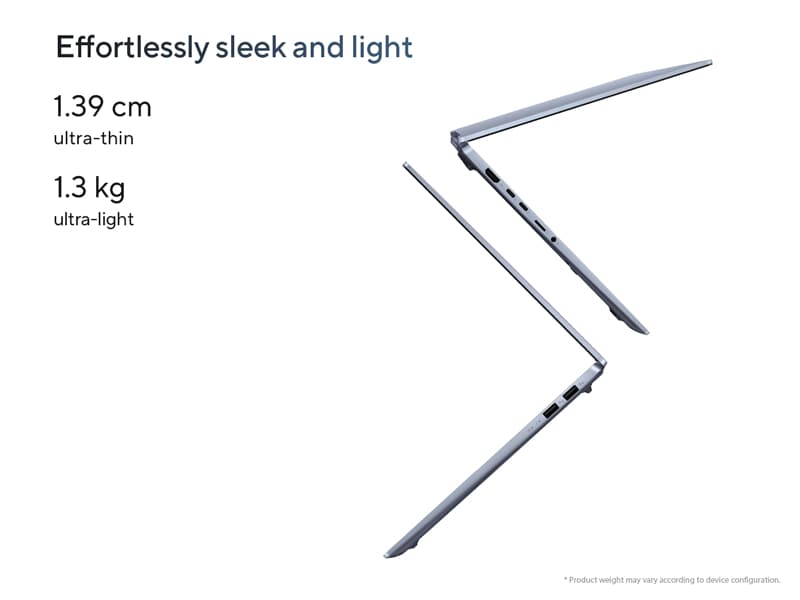 *This Asus VivoBook S14 Laptop images is for illustration purpose only. Actual image may vary.With a sleek 1.39 cm thin and a mere 1.3 kg profile, ASUS Vivobook S 14 embodies true portability. It’s incredibly easy to carry, whether you’re constantly on the move or changing locations. Relish the liberty to work and indulge in entertainment while on the move, without the burden of cumbersome equipment, in one exceptionally stylish package.