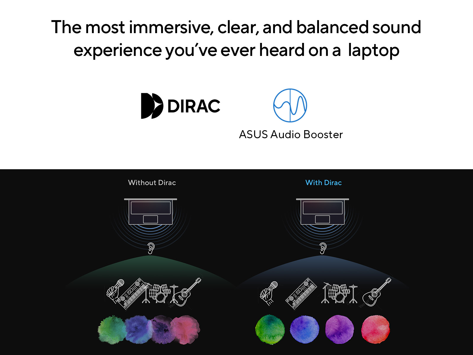 *This Asus Vivobook Laptop images is for illustration purpose only. Actual image may vary.Designed with help from the audio experts at Dirac, a professional audio solution provider, the audio system delivers the most immersive, clear, and balanced sound experience you’ve ever heard on a PC, laptop or tablet. You’ll hear a wider and deeper soundscape than you could imagine, unleashing the full audio potential of your laptop.