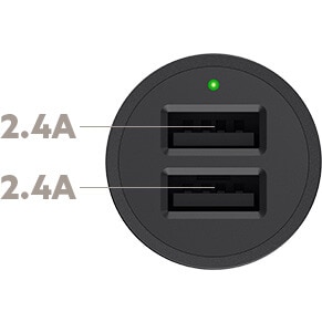 This car charger offers combined power of 24 watts (4.8 amps) with each port having a dedicated 2.4 amps. This allows you to charge your smartphones and tablets quickly and safely.
