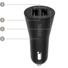 Belkin Boost Up F8M930BTBLK 24 Watts Dual Port Quickly Charge Car Adapter
