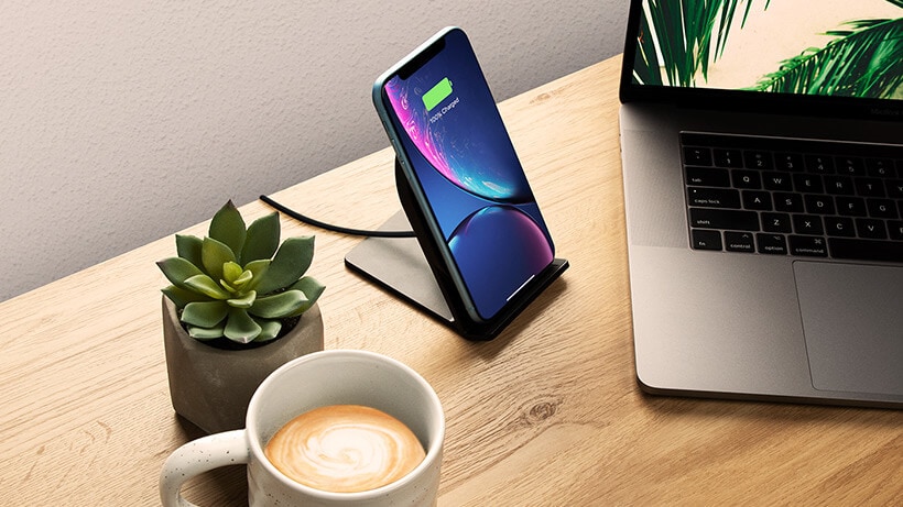 A white LED light lets you know that your device is aligned properly and charging at up to 5W. An amber light indicates that there may be a foreign object, like a credit card, between your charging stand and device. When items come between the charger and your device, the charger could emit heat which may cause damage to your belongings. Foreign object detection is an important feature for any wireless charger, that’s why it is included in all Belkin wireless chargers.