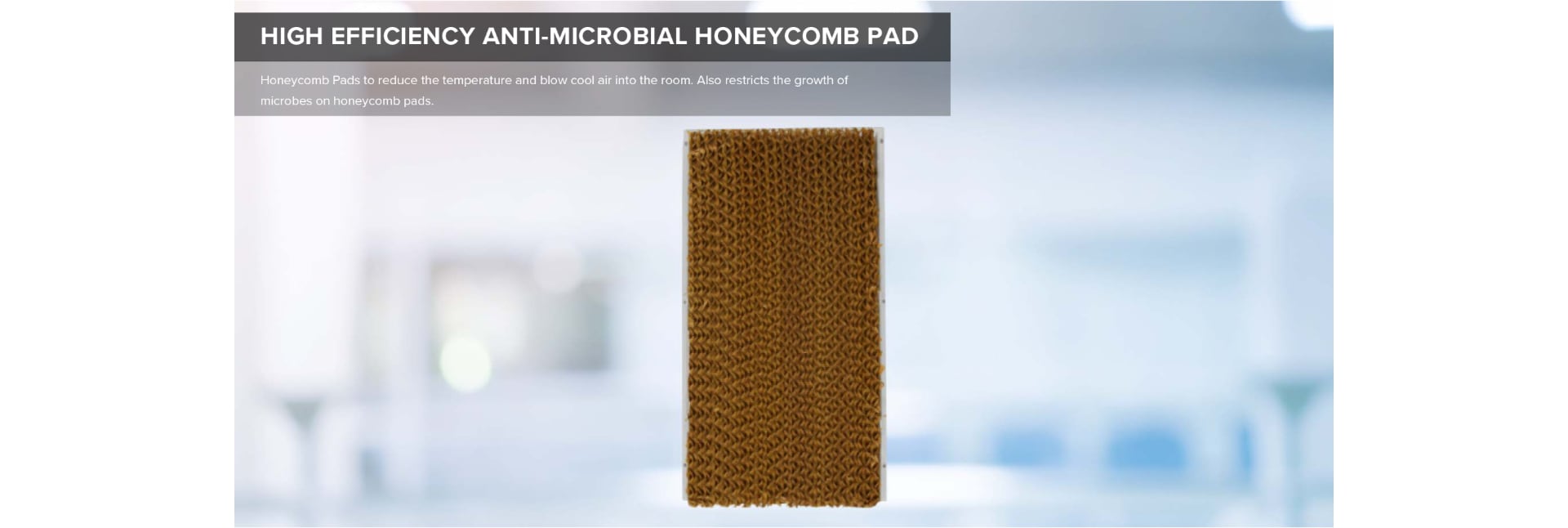 Honeycomb Pads to reduce the temperature and blow cool air into the room. Also restricts the growth of microbes on honeycomb pads.