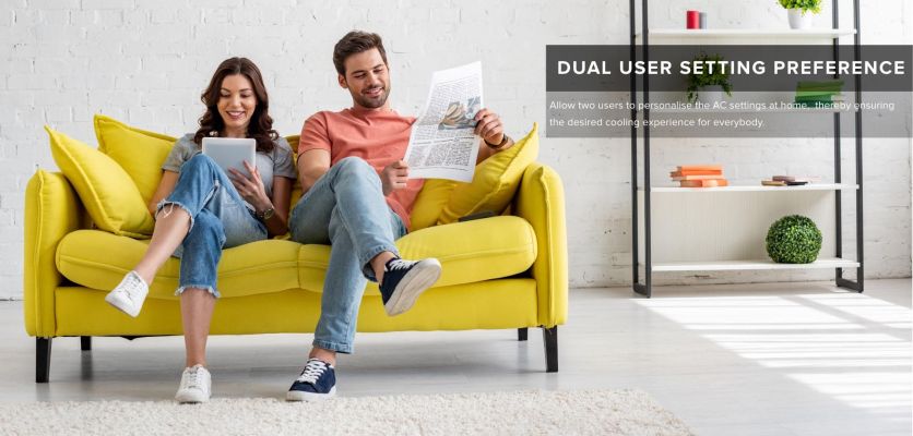 Instantly sets the preferred mode to enjoy comfortable cooling, Preferred temperature settings, fan, speed, mode and swing and Personalised "Saved" settings for two users.
