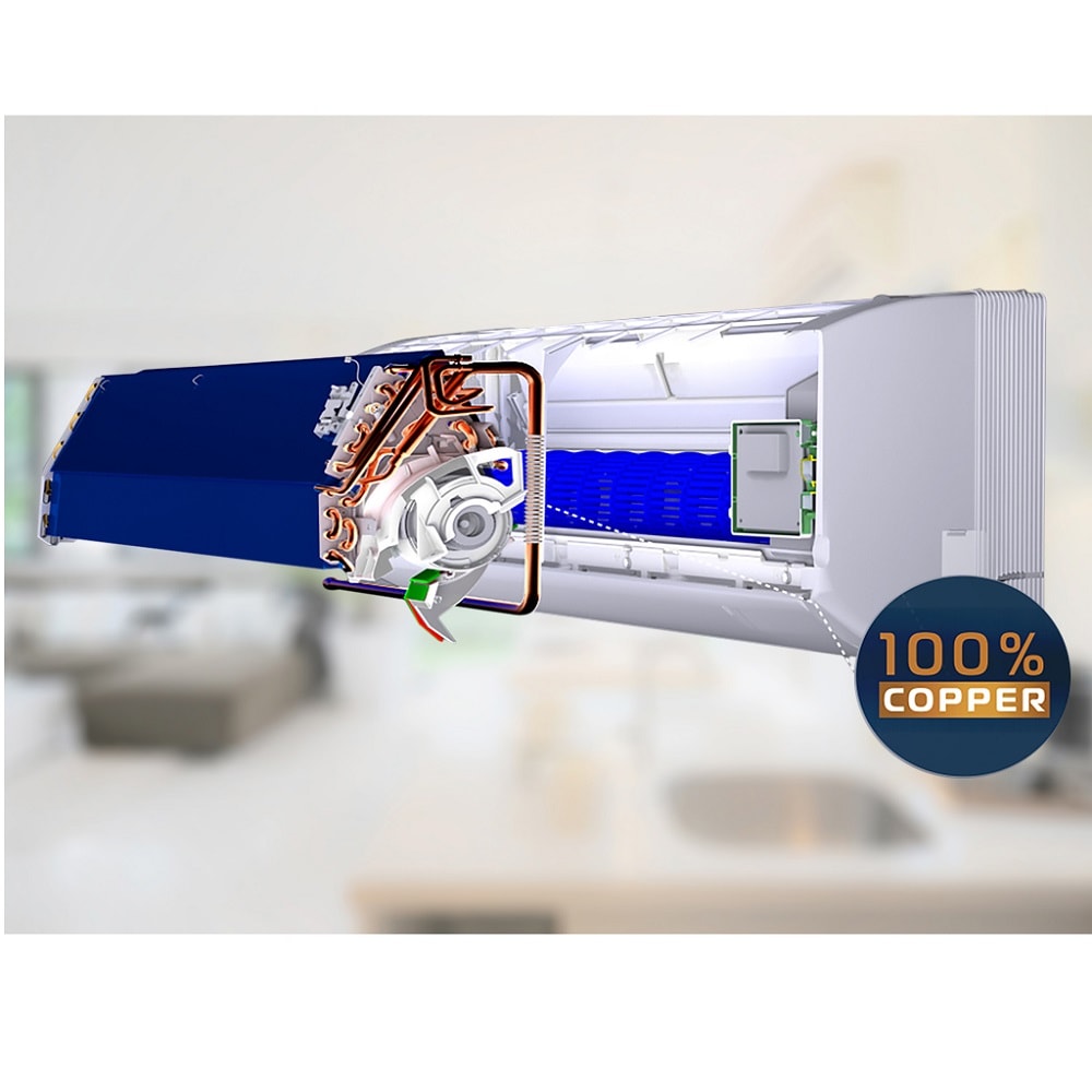 Blue Star AC's condenser coil, evaporator coil, and connecting tubes are made of 100% copper, thereby ensuring reliable cooling performance and enhanced durability.