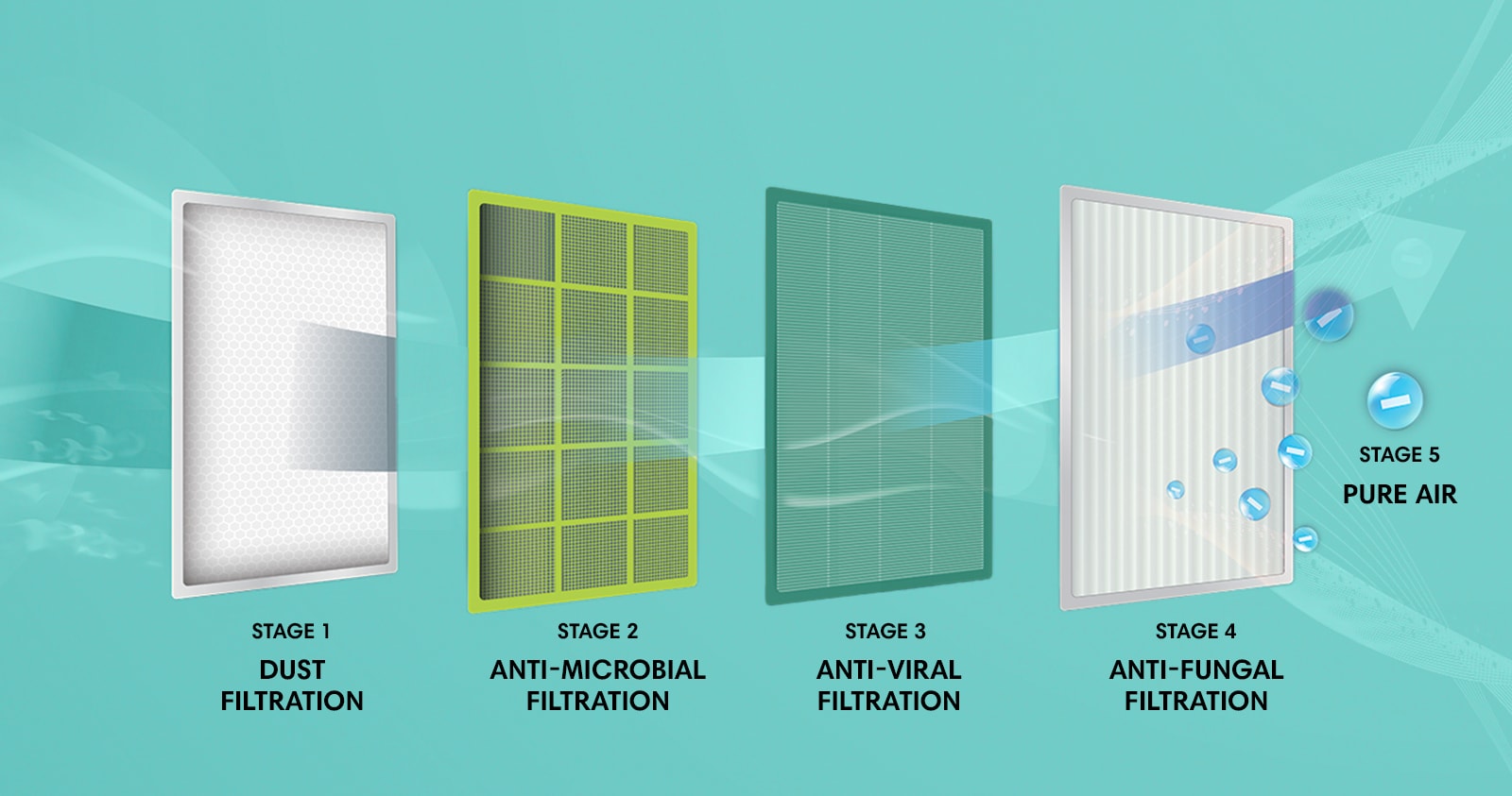 PM2.5 & Anti-Microbial FilterThis AC comes with a PM2.5 & Anti-Microbial Filter that captures tiny dust particulate matter and large dust particles along with removing bad odour from indoor air.