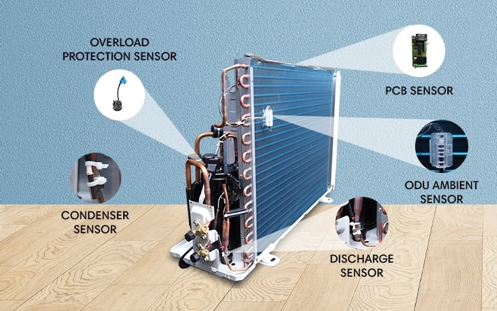 DigiQ Hepta SensorsThe AC is designed with intelligent digital sensors that integrate advanced microcontrollers, which optimise cooling in varying load conditions. These sensors provide precise cooling even in extreme summers and protect critical electronic components.
