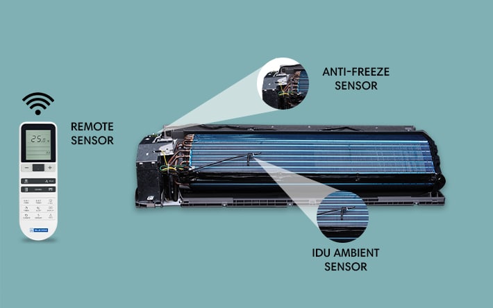 iFeelEnsures the desired cooling comfort around you, with a sensor built in the remote.