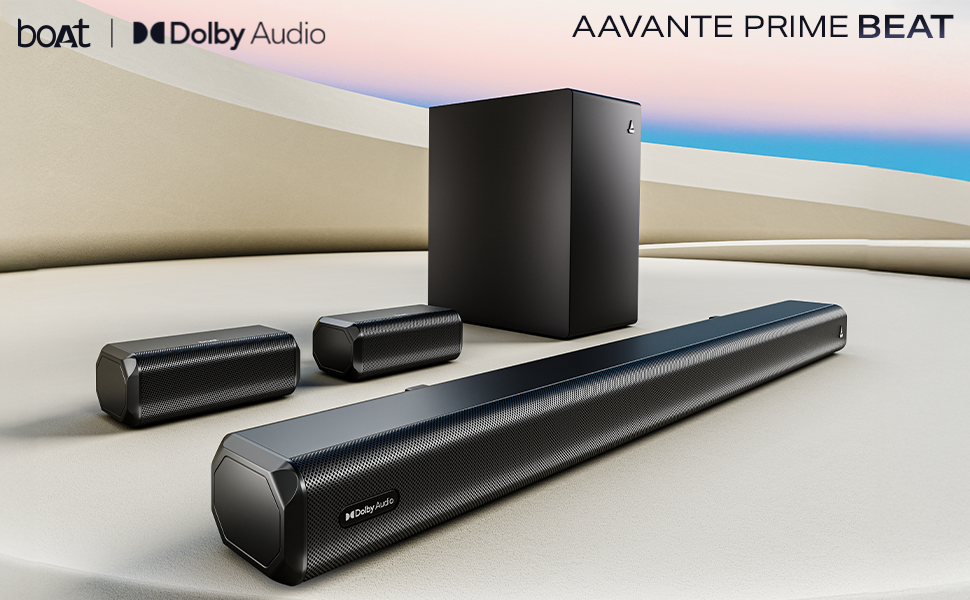 boAt Aavante Prime Beat 5.1 Channel 500 W Soundbar with Wired Subwoofer and Dual Wired Satellites, Dolby Audio, Bluetooth v5.3, HDMI(ARC), USB, AUX, Optical, Remote Control (Black)
