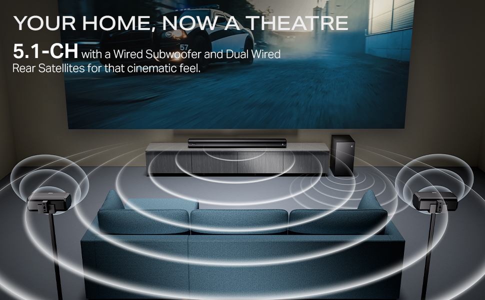 - 5.1 Channel Wired Subwoofer and Dual Wired Satellites