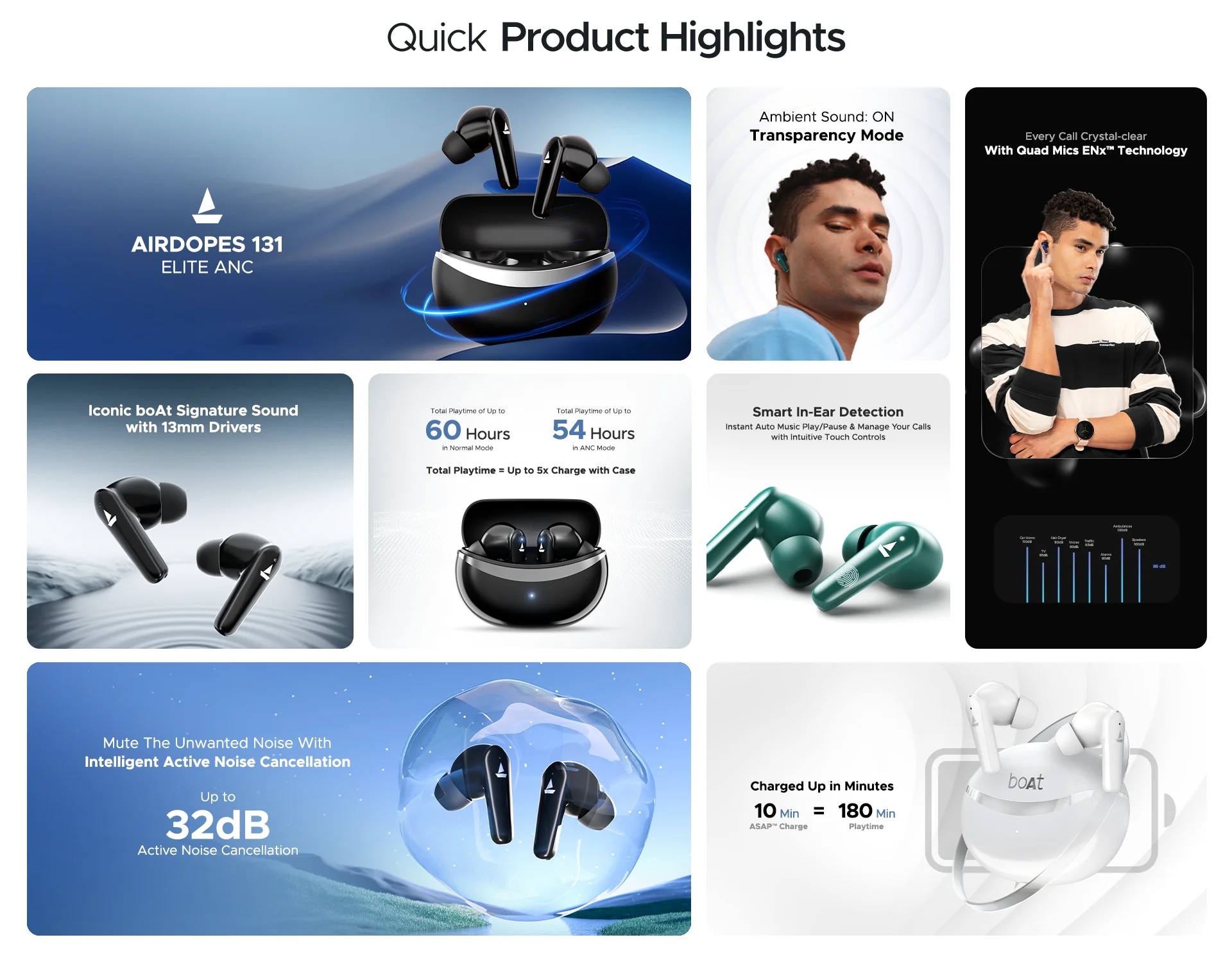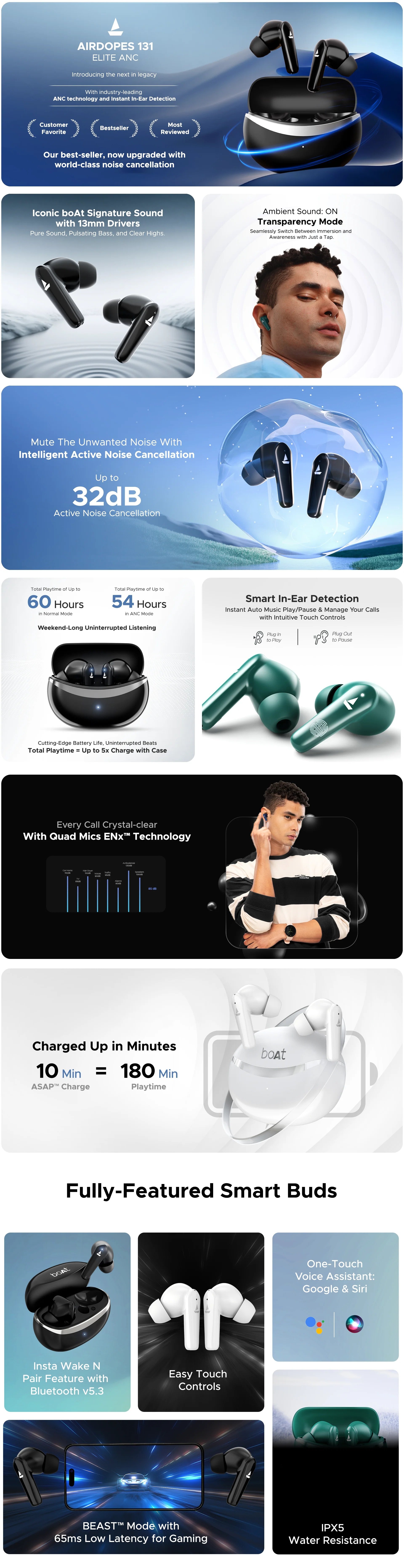 boAt Airdopes 131 Elite ANC with Active Noise Cancellation upto 32 dB, 60 HRS Playback & Chrome Design (Active Teal)