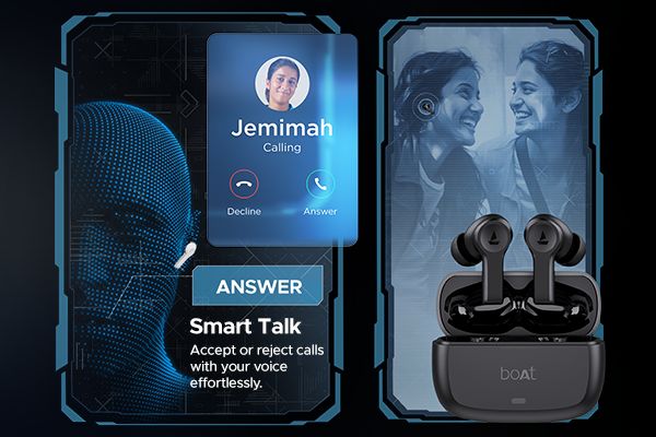 - Smart Features: Smart Talk- Smart Talk by boAt’s Voice Control lets you manage incoming calls hands-free by saying ‘Accept’ and ‘Reject’ aloud. Speak Thru- boAt’s SpeakThru mode lowers the earbud audio volume automatically when you start conversing with your friends or teammates