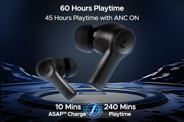 boAt Airdopes Flex 454 ANC Truly Wireless in-Ear Earbuds with Smart Features, ANC, 60 HRS Playback, Hearables App Support, Quad Mics, Multi Point Connectivity, ASAP Charge, Beast Mode (Gunmetal Black)