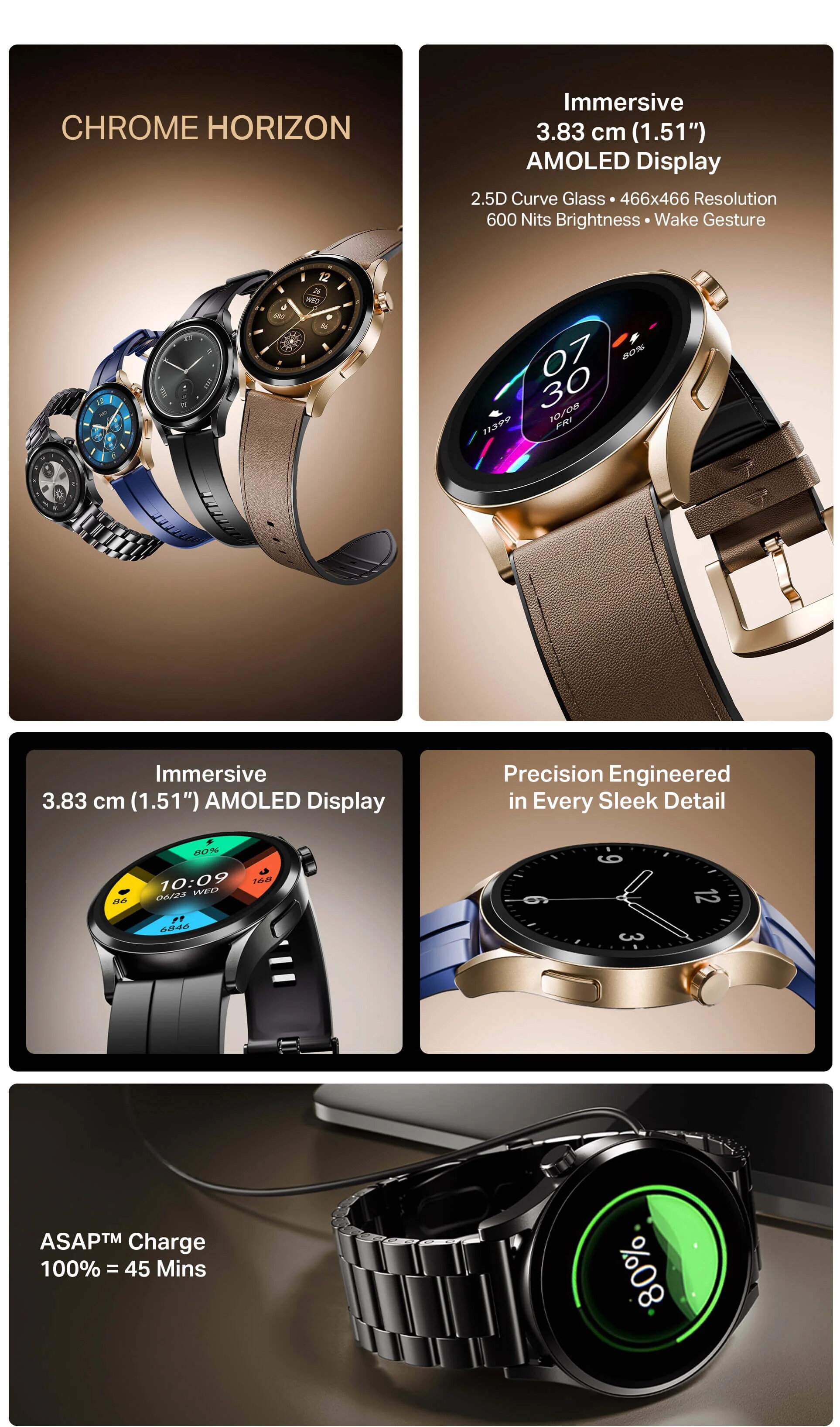 boAt Chrome Horizon Smartwatch, Steel Black