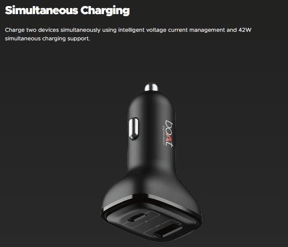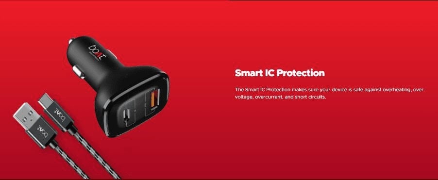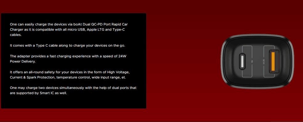boAt Dual QC PD Without Cable Car Charger, 18 W, 5.4 A Rapid Charge, Smart IC Protection, Qualcom Quick Charge, 3.0 Certified, Compatible with Micro USB and Type-C Cable, Black