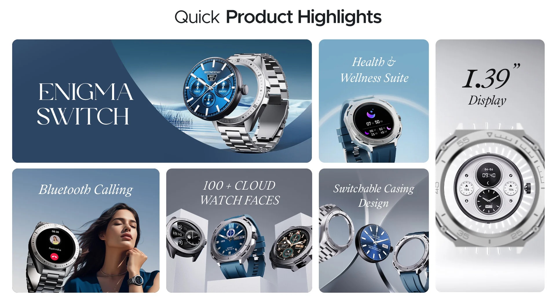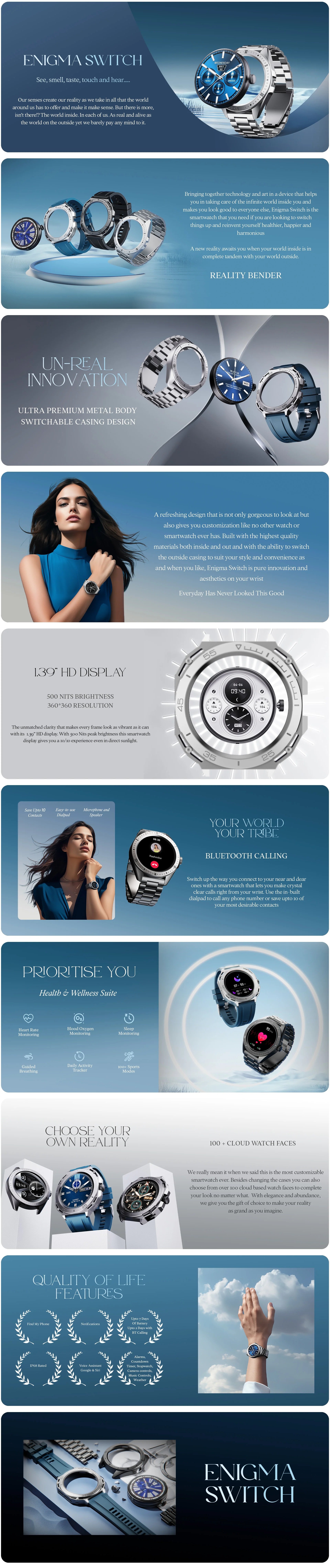 boAt Enigma Switch Smart Watch with Switchable Case 3.53 cm (1.39 inch) HD Display & Ultra Premium Metal Body Design & Functional Crown, 100+ Sports Mode,Multiple Watch Faces,HR & SpO2(Steel Black)