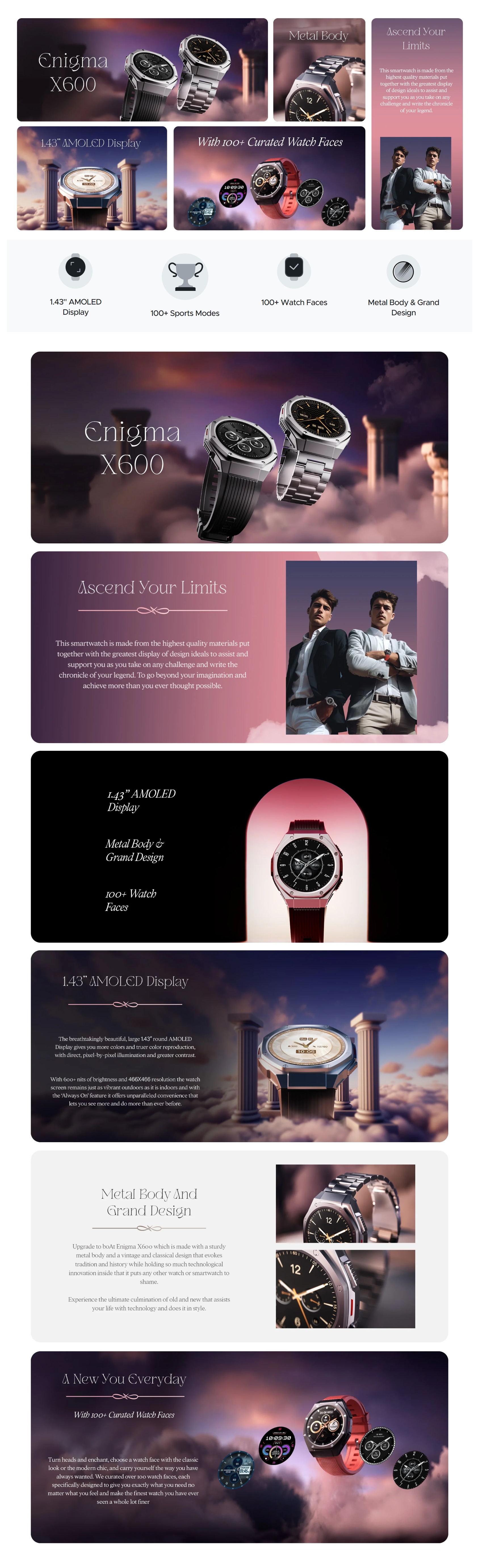boAt Enigma X600 Smartwatch, 3.63 cm (1.43 inch) Always On AMOLED Display, Bluetooth Calling, Premium Metal Design, Upto 10 Days Battery, Rugged Durability, IP68 Water Resistant, AI Voice Assistant (Royal Orange)