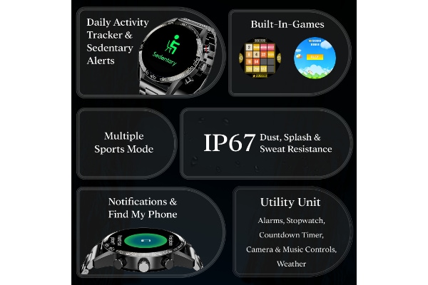 boAt Enigma Z40 Smart Watch with 3.35 cm (1.32 inch) HD Display, Luxurious Metal Body Design, 100+ Sports Mode, Female Wellness, Built-in Games, HR & SpO2, IP67(Black Leather)
