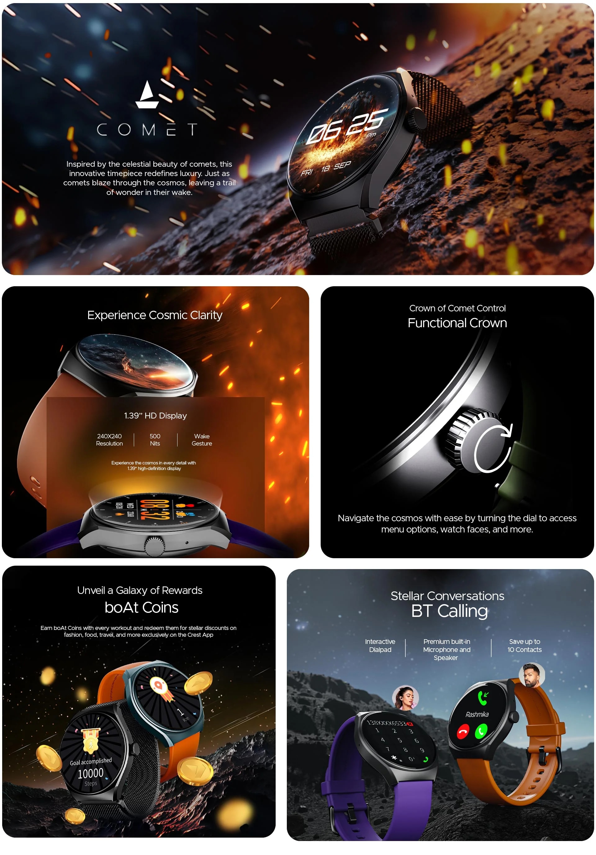 boAt Lunar Comet Smart Watch with 3.53 cm (1.39 inch) HD Display, Advanced Bluetooth Calling, Functional Crown, boAt Coins, 100+ Sports Modes, Heart Rate & Blood Oxygen Monitoring, IP67 Rated (Deep Purple)