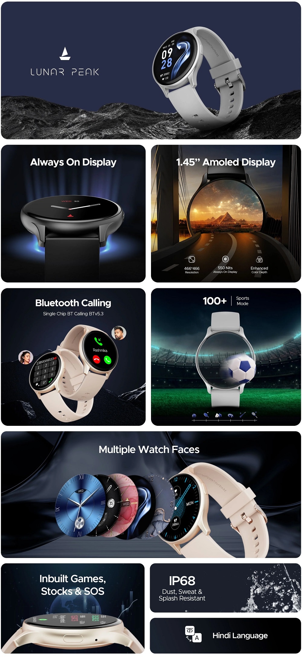 boAt Lunar Peak Smart Watch with Curve 3.68 cm (1.45 inch) AMOLED Display, Always On Display, Advanced Bluetooth Calling and Custom Watch Faces (Black)