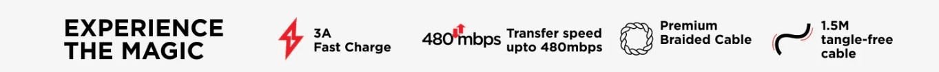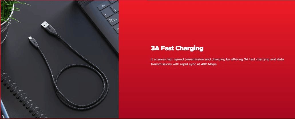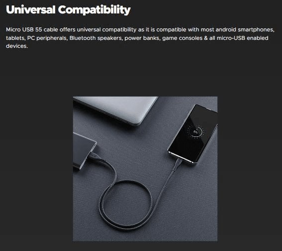 boAt Micro USB Cable 55, 150 cm (1.5 m) Length, 3A Fast Charging, 480mbps Data Transfer, Tangle Free, 10000+ Bends Lifespan, Braided Cable, Universal Compatibility with all Micro USB Devices, Black