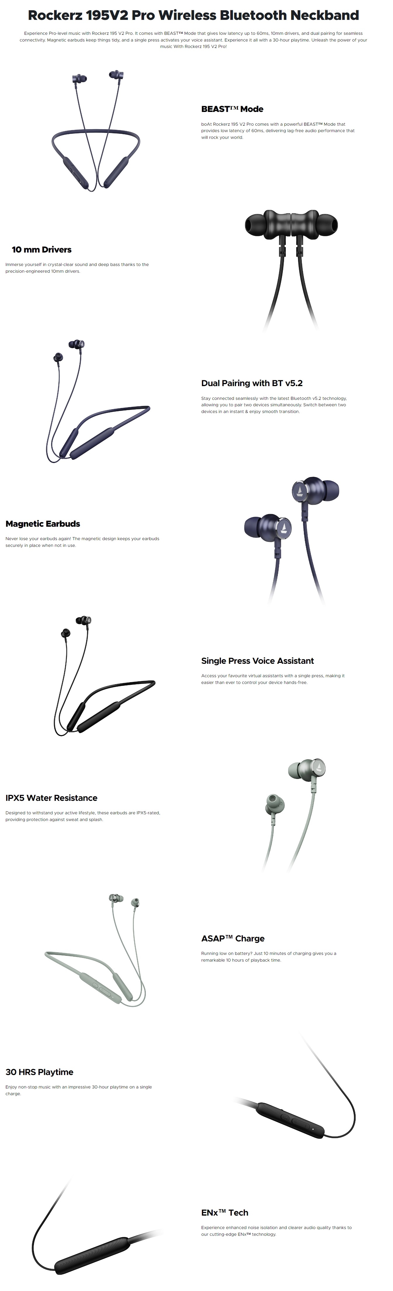 - Playback- Keep dancing to the tunes of your moods all day long as Rockerz 195v2 Pro is backed with a playtime of upto 30 hours.