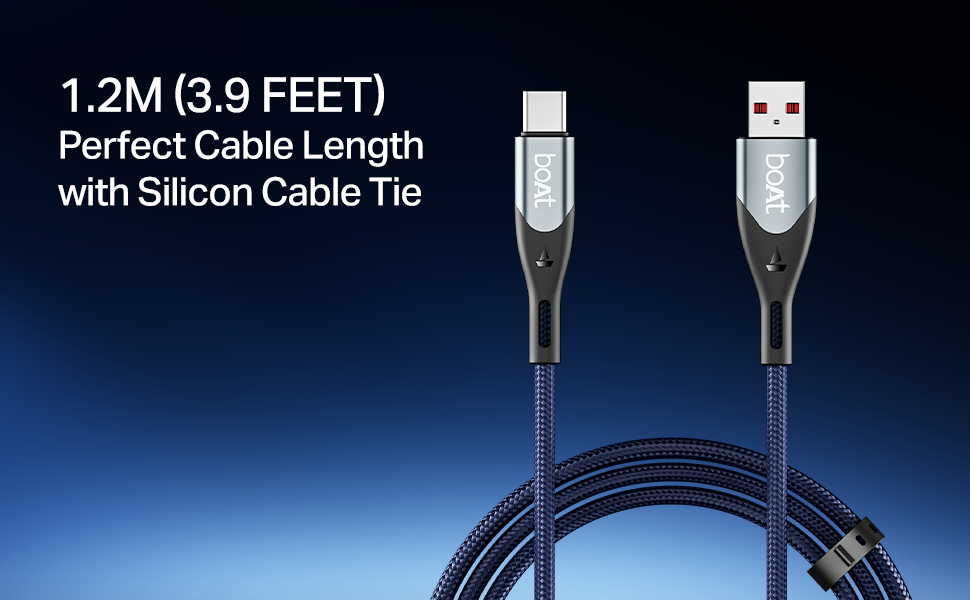 - 1.2 m Length with Silicone Cable Tie: The 3.9 ft (1.2 m) cable offers flexibility for charging while working, relaxing, or commuting—plus, it comes with a built-in silicon tie for neat storage