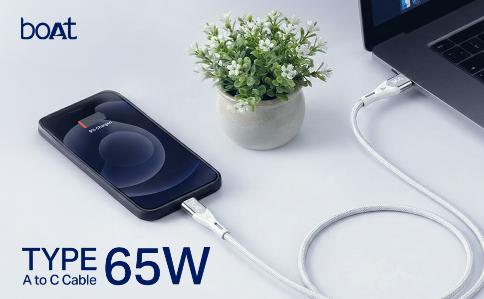 - 65 W Fast Charging Type A to C Cable: Power up your devices swiftly with up to 65 W fast charging. Ideal for smartphones, tablets, this cable ensures efficient power delivery every time