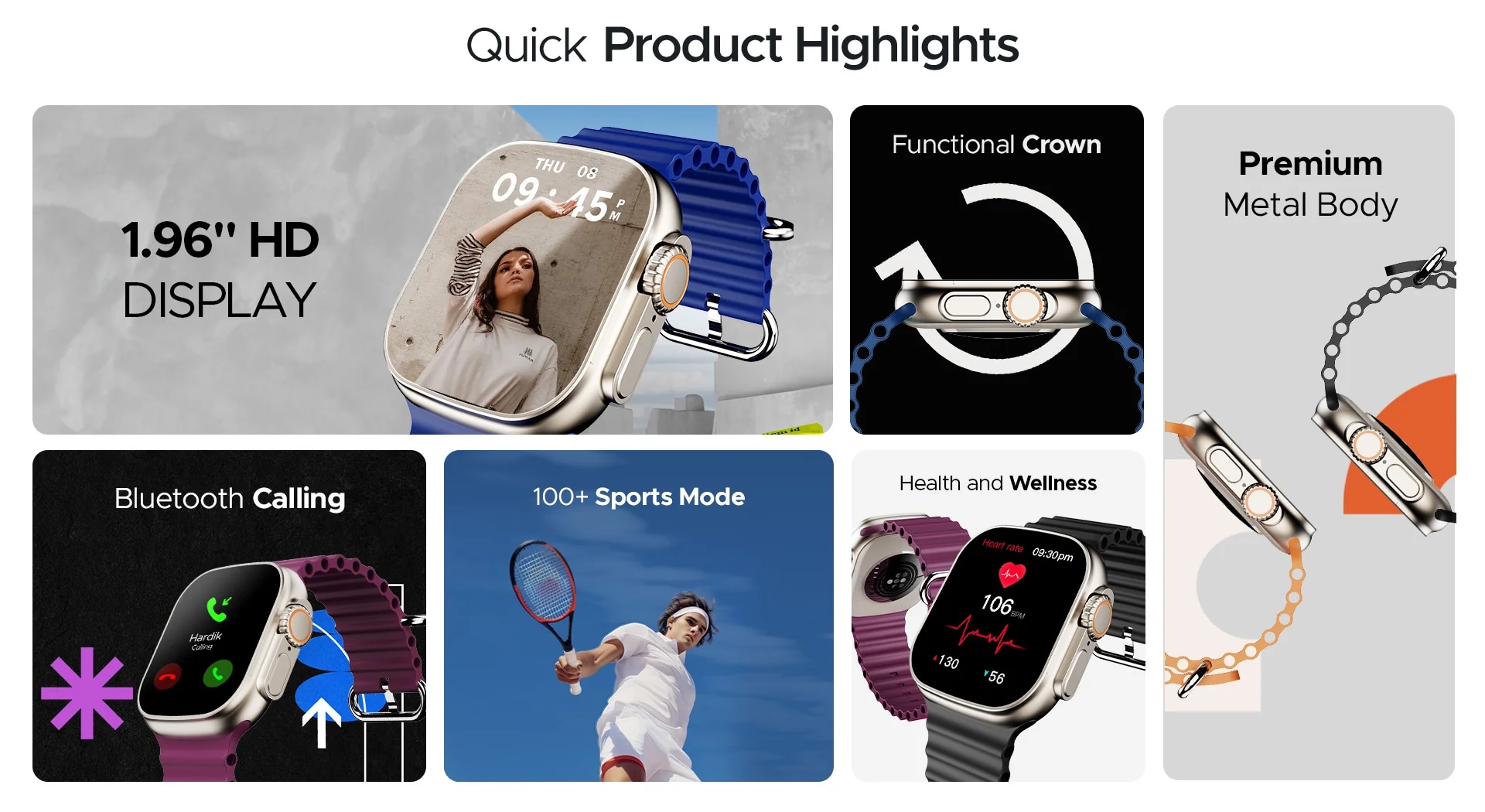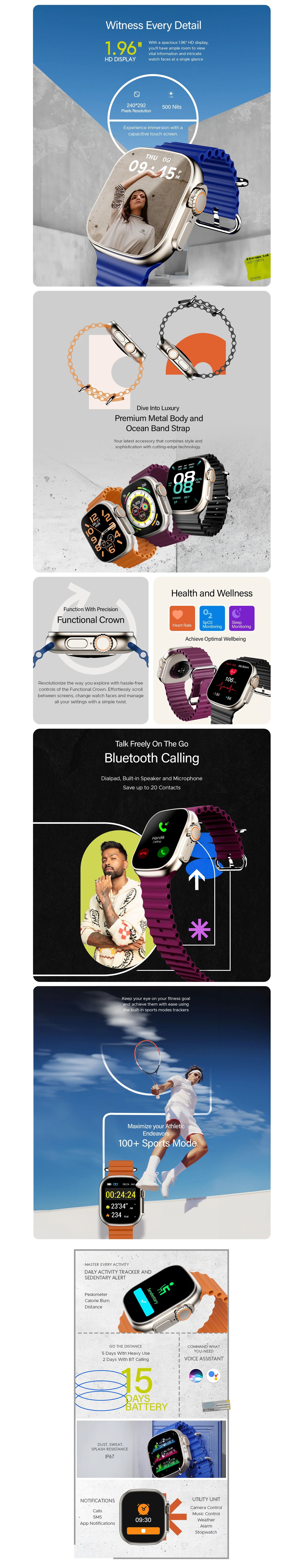 • Advanced Bluetooth Calling, 100+ Sports Modes, Heart Rate & Blood Oxygen Monitoring, Stress Monitoring