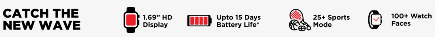 On to the next! Wave Voice brings you top of the line features. With Bluetooth calling, stay on the line with your loved ones while on the go. Enter a world full of colours with its 4.29 cm (1.69 inch) HD display and 2.5D curved touch display. Wave Voice comes with 10 days of charge to keep you going. Wave Voice is equipped with a heart-rate & SpO2 monitor, sedentary & hydration alerts, and more to keep you in tip-top shape . Let your Voice be heard!