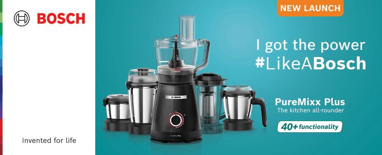 Bosch PureMixx Plus Mixer Grinder + Food Processor 800W, 5 Jar, Black