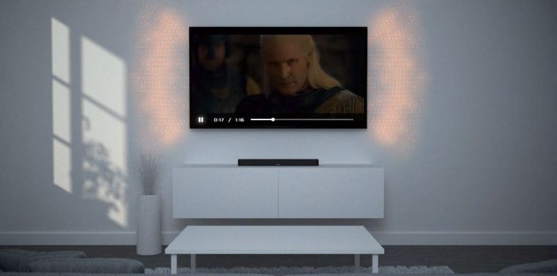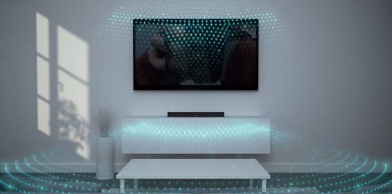The sound bar separates instruments, dialogue and effects, and places them throughout your room. Far left, far right and even overhead.