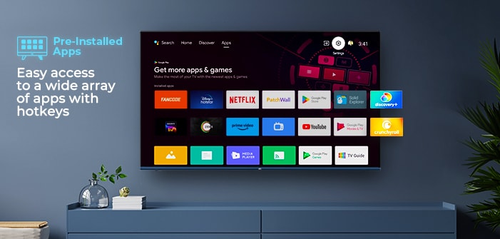 Easy access to a wide array of apps with hotkeys.The TV comes with a list of pre-installed applications such as Netflix, Amazon Prime Video, YouTube, Sony Liv etc. along with all the popular apps. Which can be easily accessed through hotkeys.