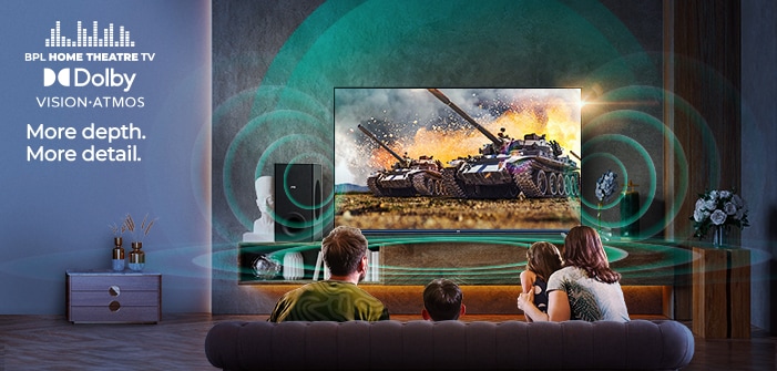 The BPL Home Theatre TV series is designed to redefine your entertainment with an unmatched cinematic experience. Equipped with advanced Dolby vision, it offers crisp details and deep contrast, even in dark night shots. This is further complemented by the multidimensional spatial sound of Dolby Atmos for theatre-like sound precision.