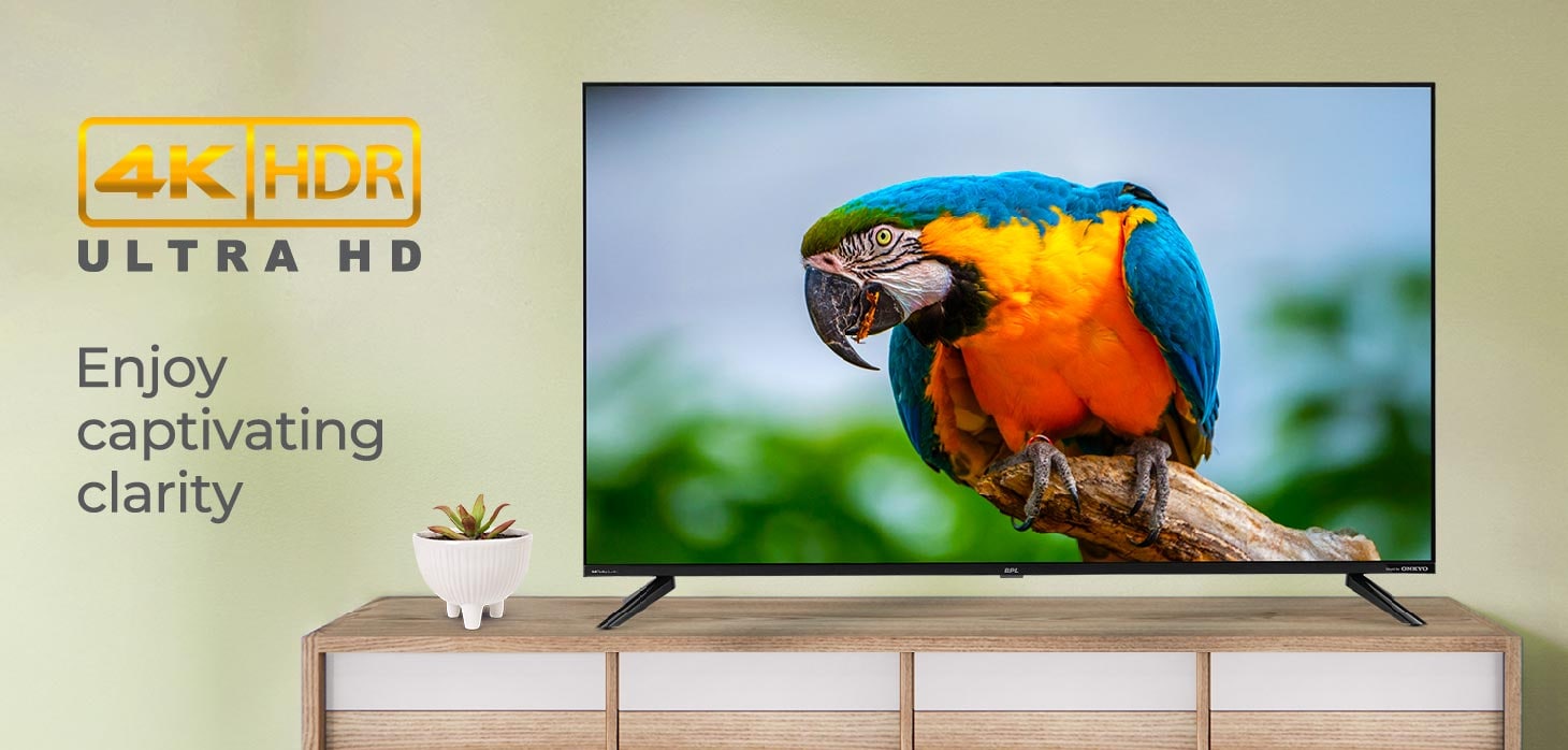 Step into the world of your content with unparalleled clarity and lifelike visuals, delivered by your BPL 4K Ultra HD TV. Experience four times the resolution of Full HD, with sharper details, vibrant colours, and enhanced clarity.