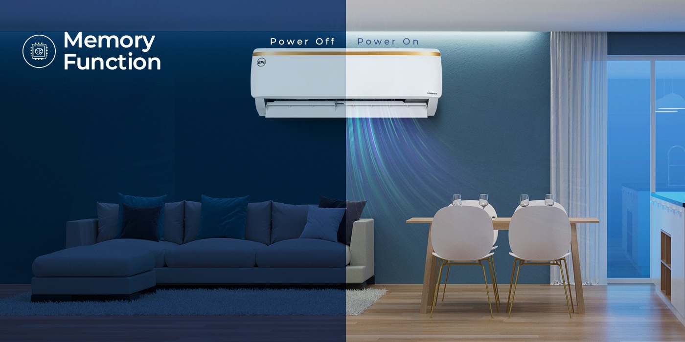 Memory FunctionBe it a power cut or the usual switching OFF of the AC, this setting lets you resume from the same modes and settings from where it ended or was paused last.
