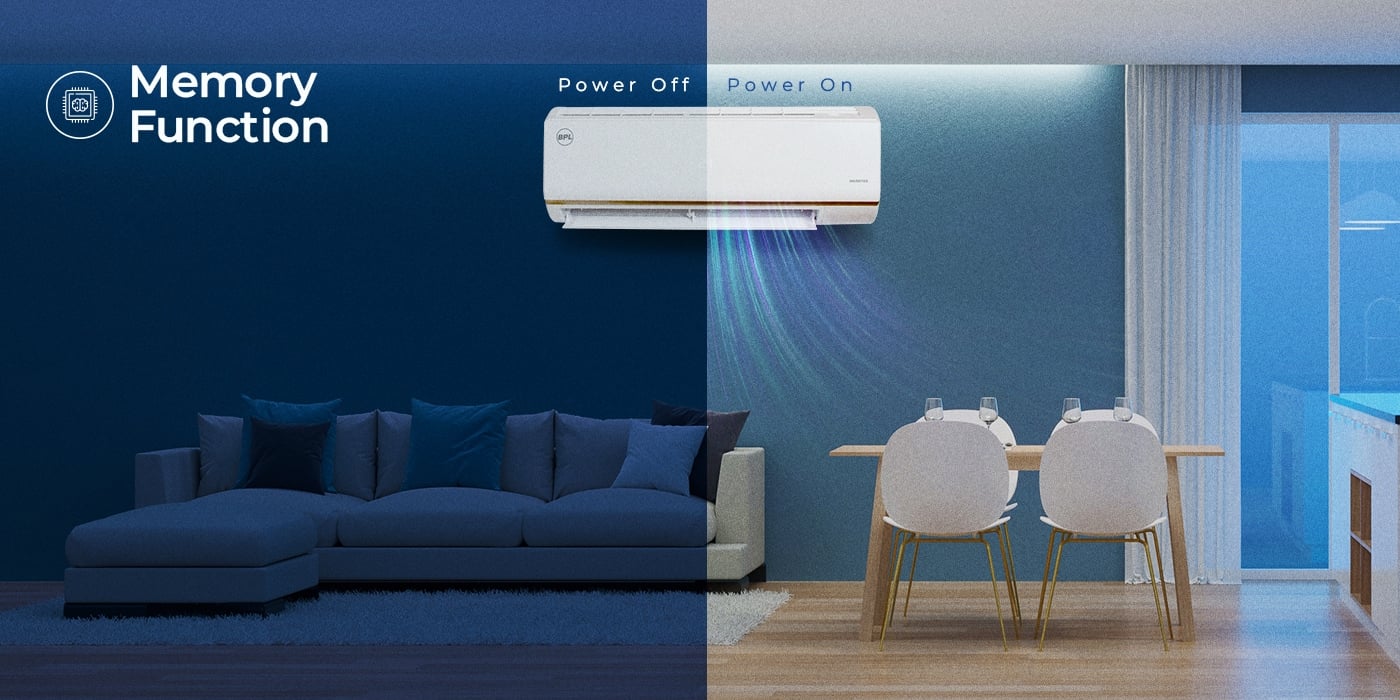 Memory FunctionBe it a power cut or the usual switching OFF of the AC, this setting lets you resume from the same modes and settings from where it ended or was paused last.