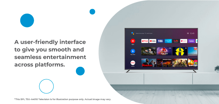 * This BPL 75U-A4010 Smart LED TV image is for illustration purpose only. Actual image may vary.