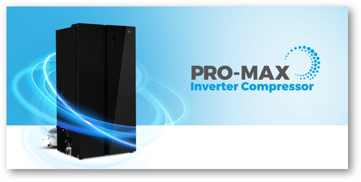 Pro-Max Inverter CompressorThe refrigerator is powered with a variable frequency drive compressor and a fan motor, which run according to the refrigerator load, saving more energy compared to a conventional refrigerator.