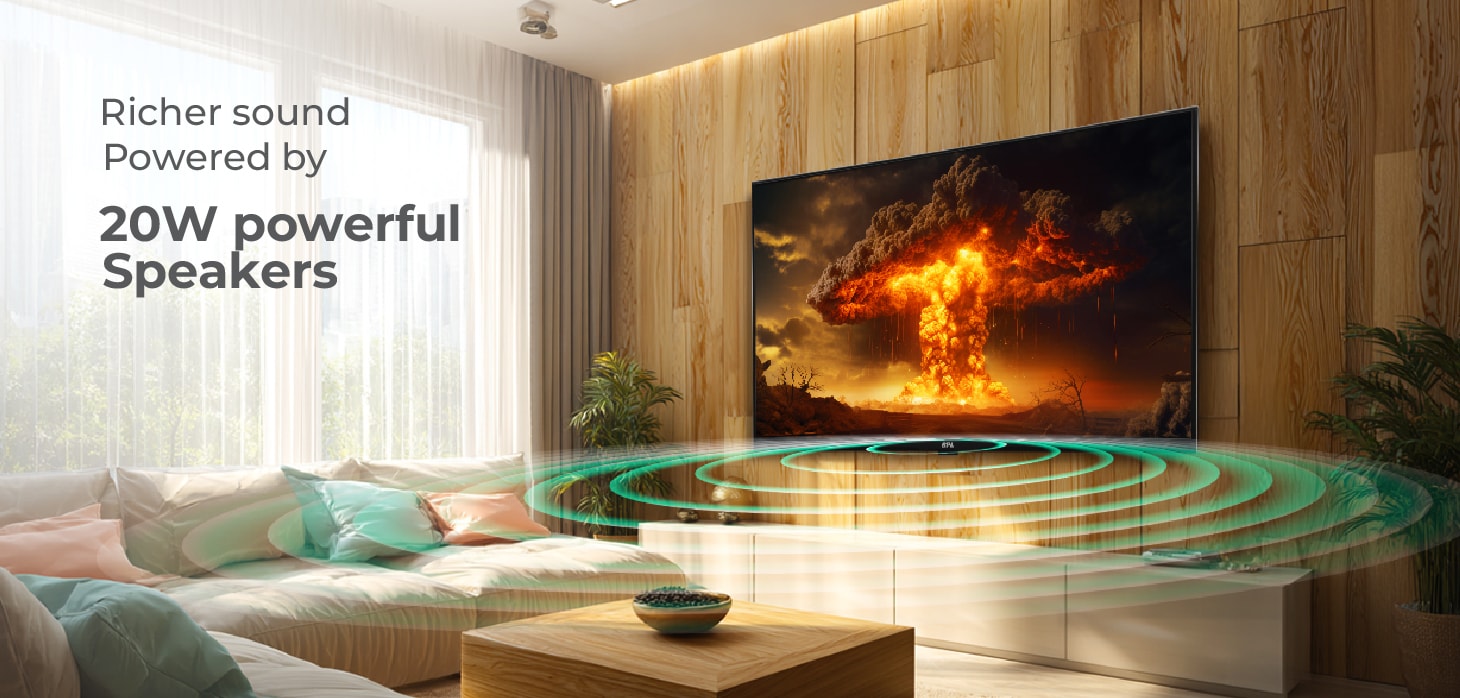Enjoy rich and dynamic audio with powerful 20W speakers. Choose from five sound modes: Standard, Stadium, Movie, Music, and User—to elevate your overall viewing experience.