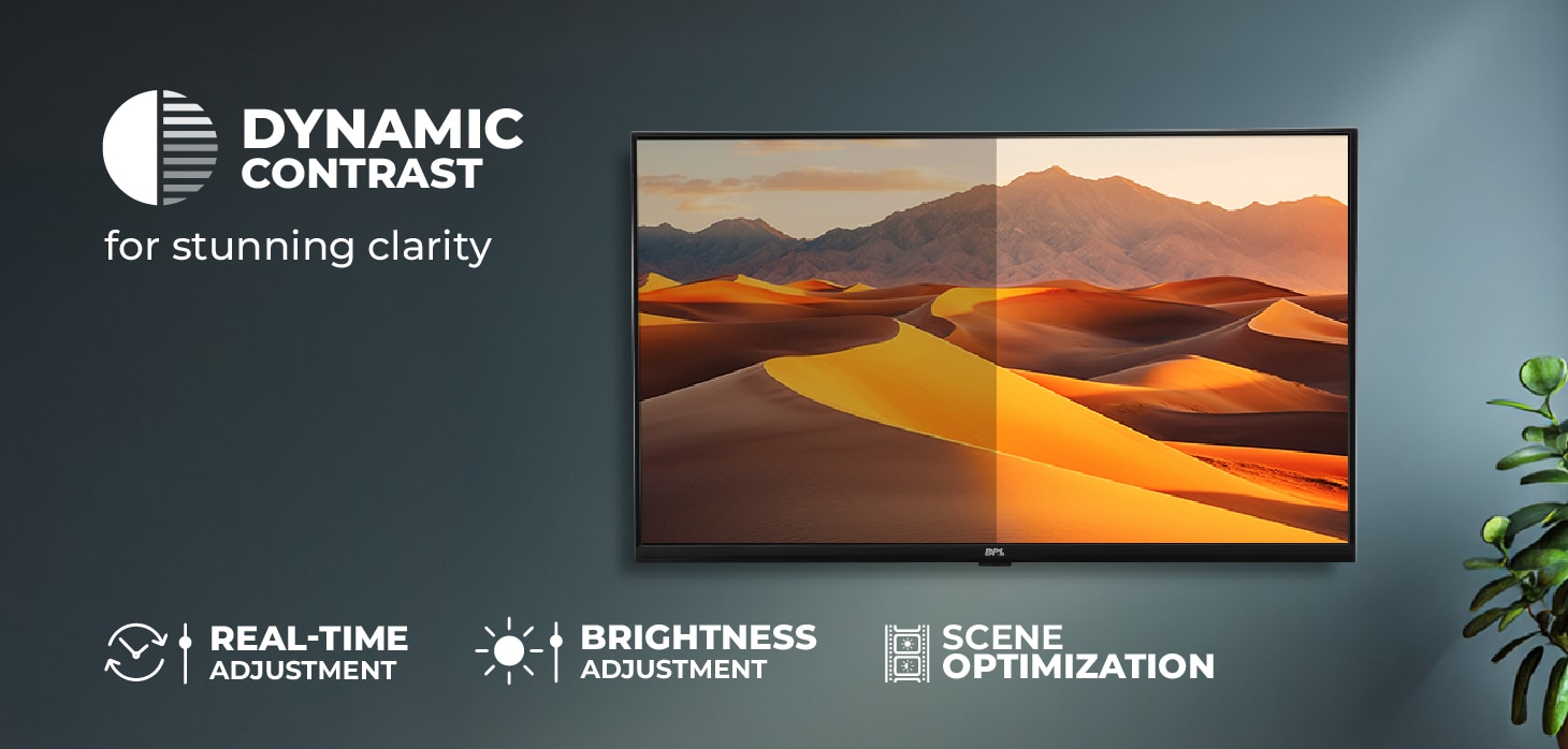 Dynamic Contrast enhances image depth by adjusting brightness in real-time, making dark scenes darker and bright scenes brighter. This delivers balanced visuals with richer details and sharper contrast for an immersive viewing experience