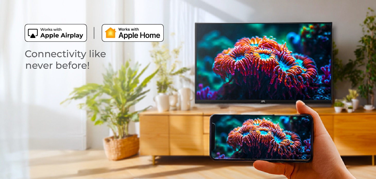 Easily stream videos, music, and more from your iPhone, iPad, or Mac with Apple AirPlay and effortlessly control your smart home devices with Apple HomeKit from your favourite screen.