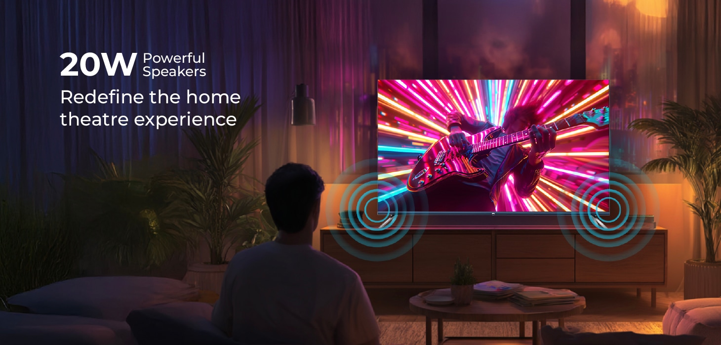 Feel every beat with 20W powerful speakers on your 32-inch TV. With 5 customizable audio modes—including Movie, Music, and Stadium—Audio delivers immersive surround sound tailored to your content.