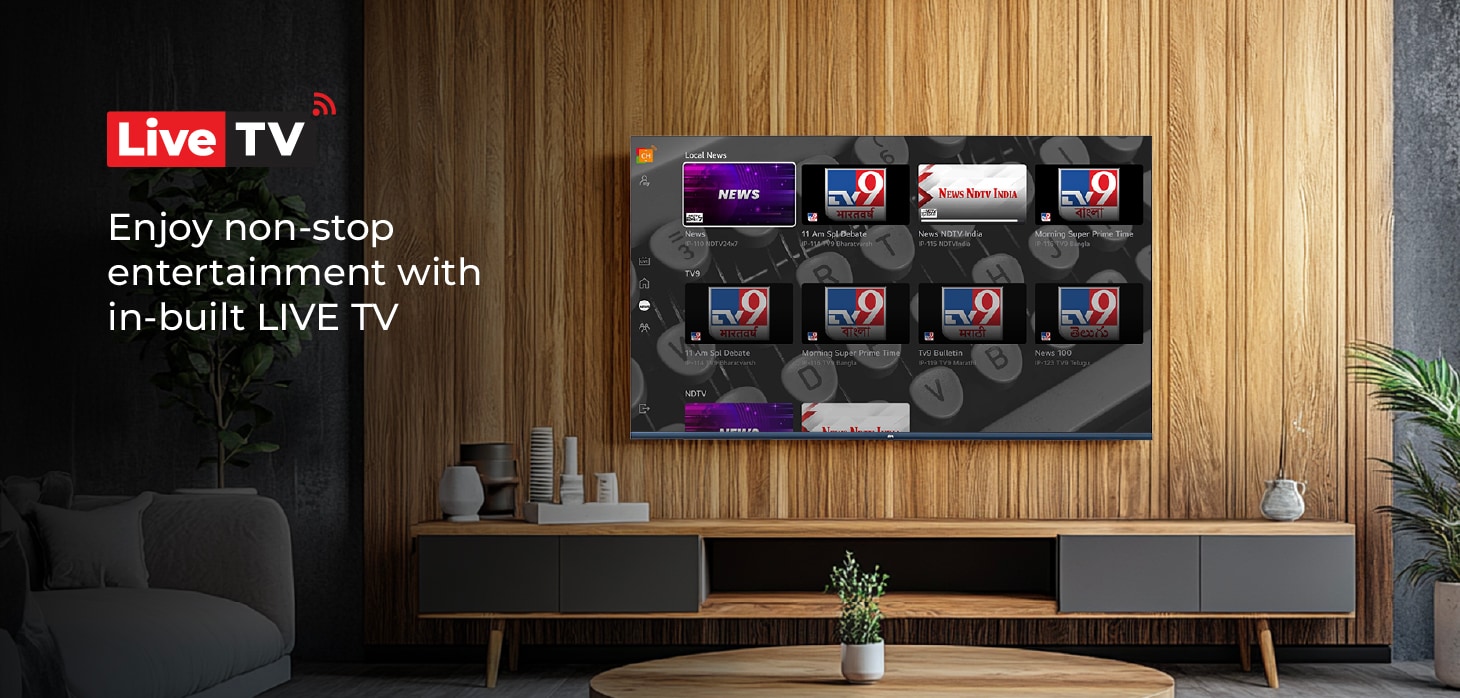 Enjoy easy and free access to your favourite channels with in-built LIVE TV for uninterrupted entertainment.
