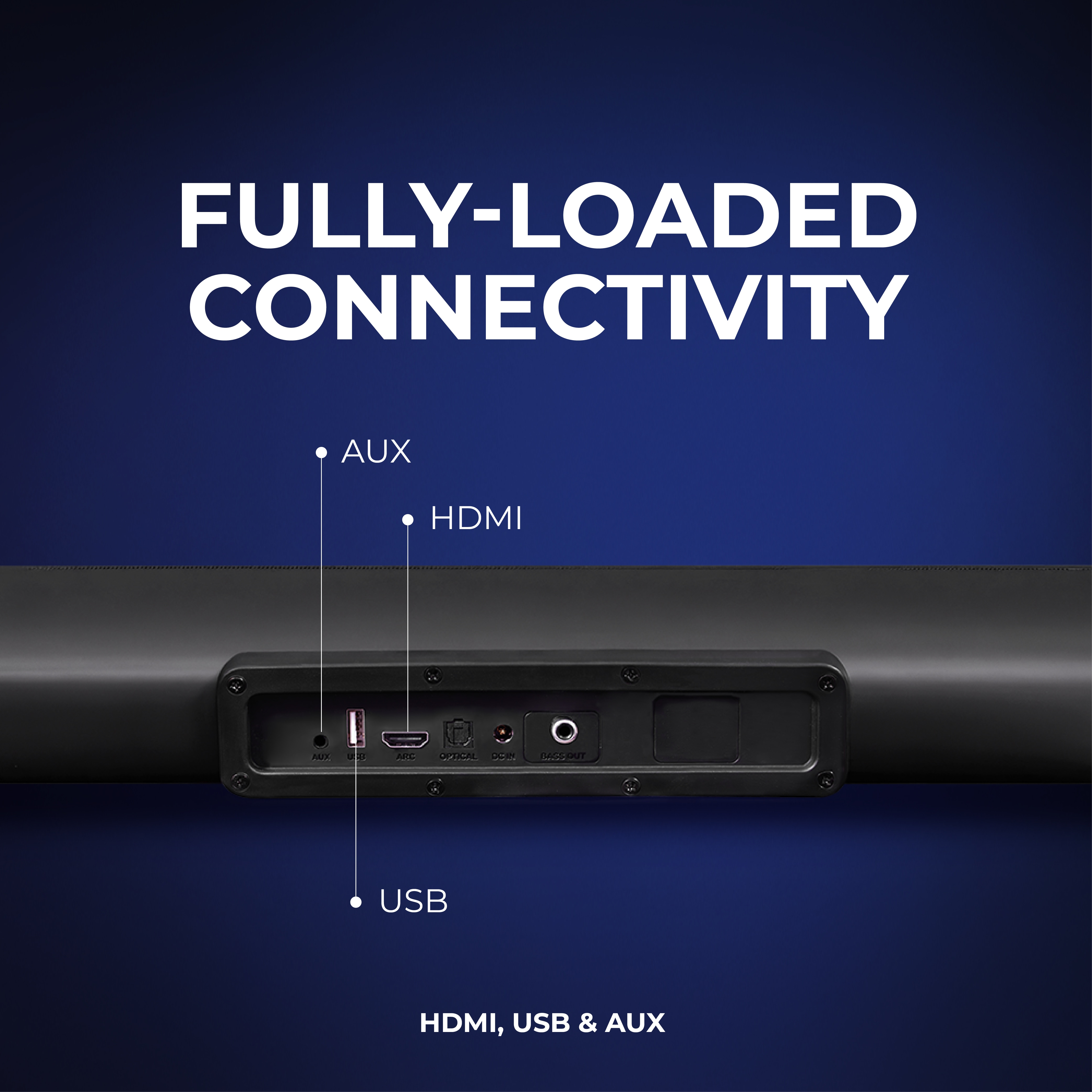 - 2.1 Channel Soundbar: Immersive audio setup with dedicated subwoofer for a full-range home entertainment experience <li>300 W Powerful Output: High-performance sound that fills your room with crystal-clear highs and deep lows