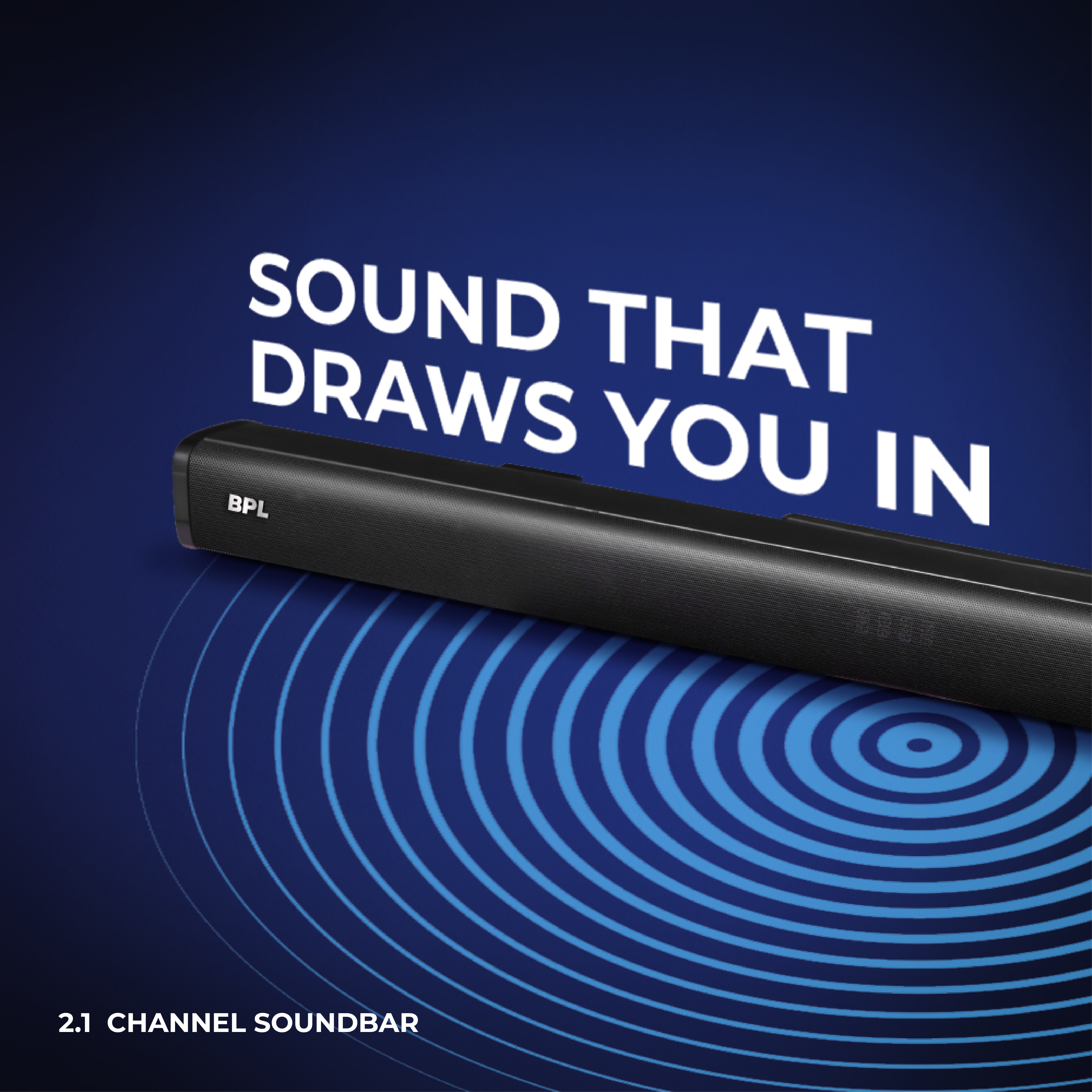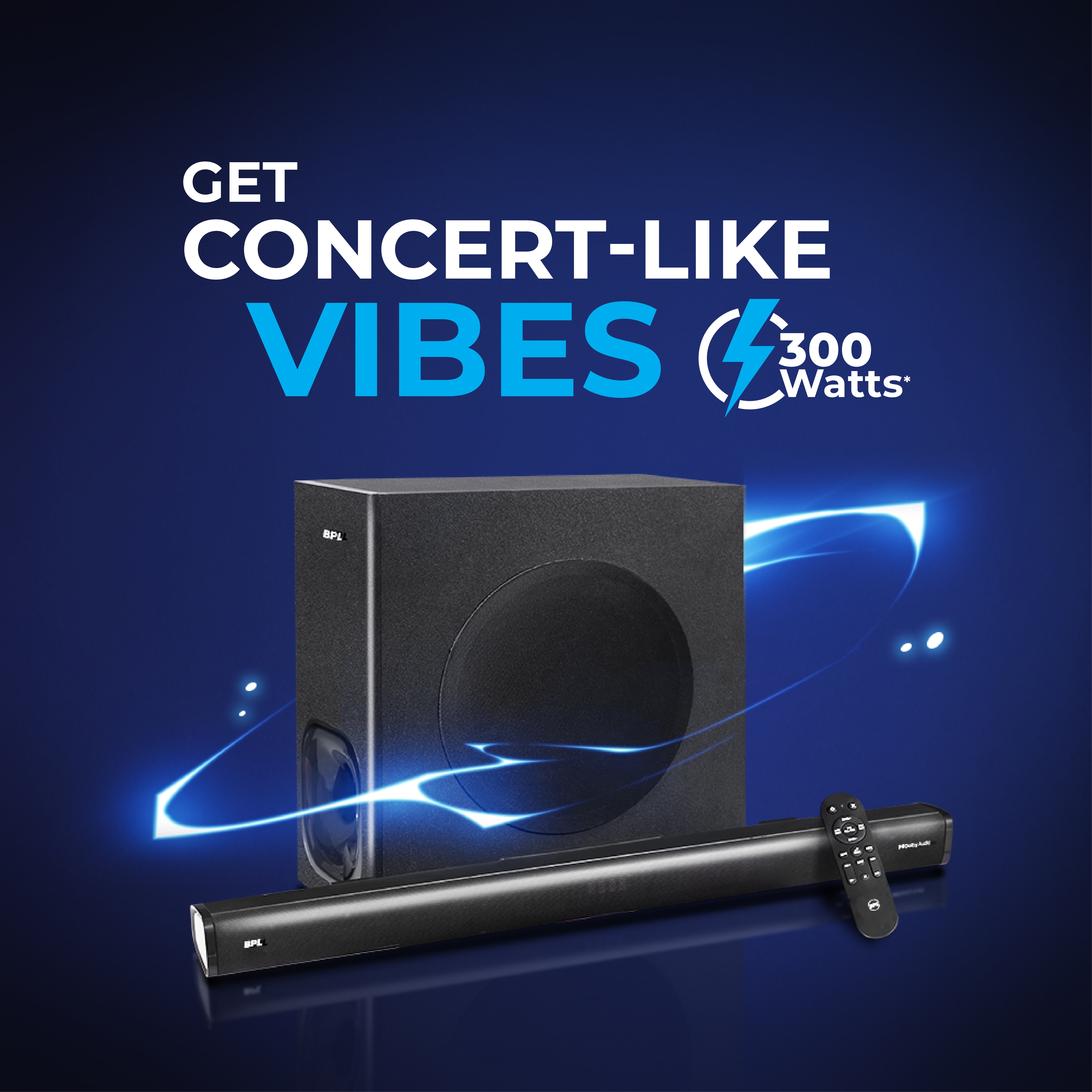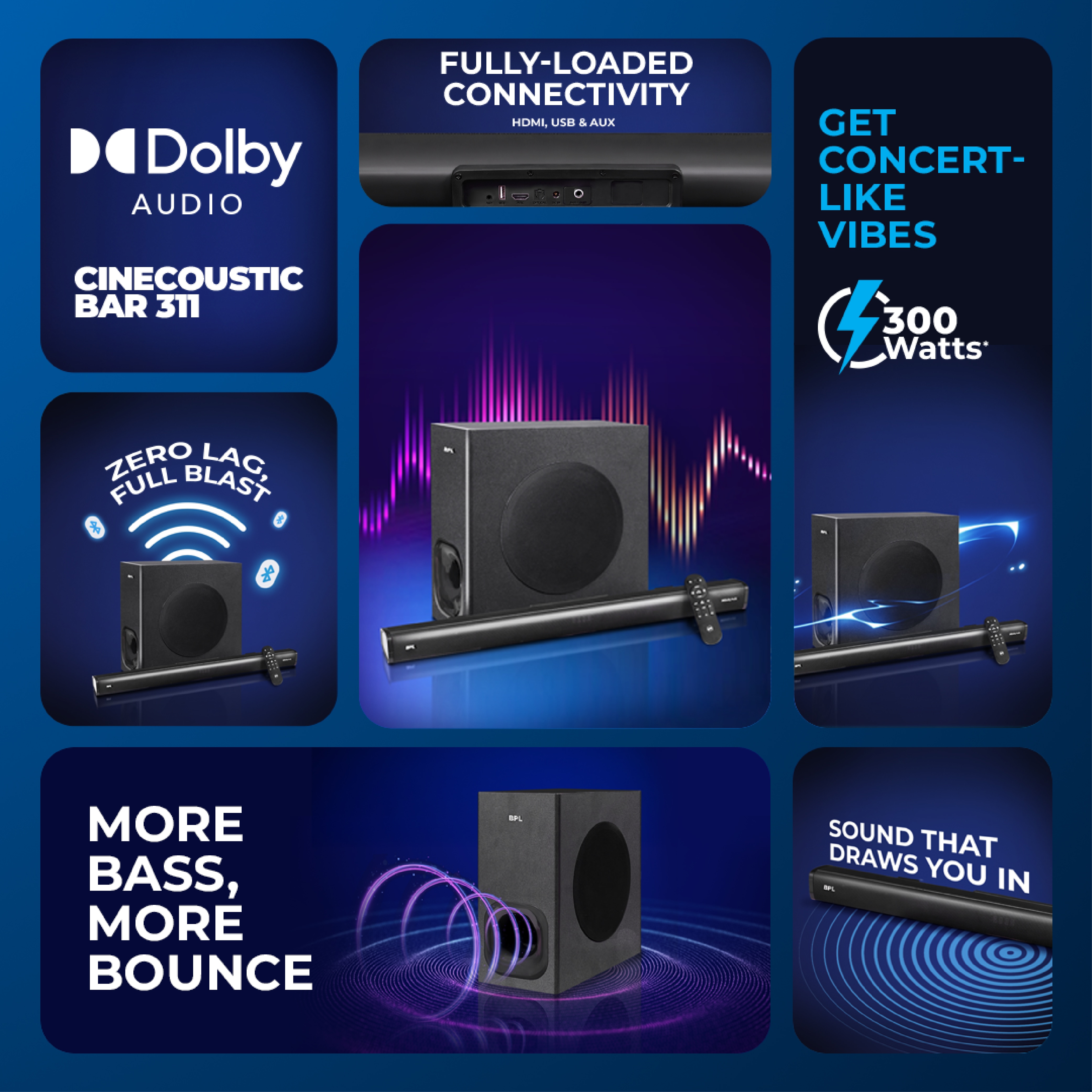 BPL CineCoustic 2.1 Channel Soundbar with 300 Watt Output, Dolby Audio, 16.51 cm (6.5 inch) Subwoofer, BT v5.3, HDMI ARC, AUX, USB & Optical Connectivity, BSBL311