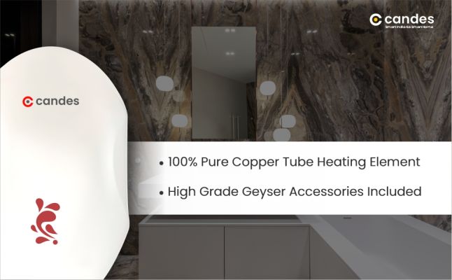 Candes Gracia, 10 litres, 2000 Watts, Storage Water Geyser, 5 Star Rating, Ivory