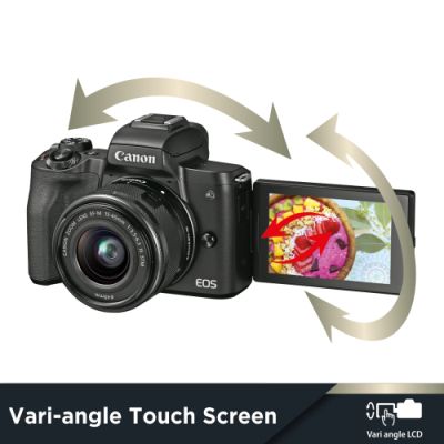 EOS M50 has a Vari-angle touch screen LCD monitor, which not only allows users to shoot self-portraits, but also makes low-angle and high-angle shooting easier, even when holding the camera in a vertical orientation.