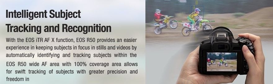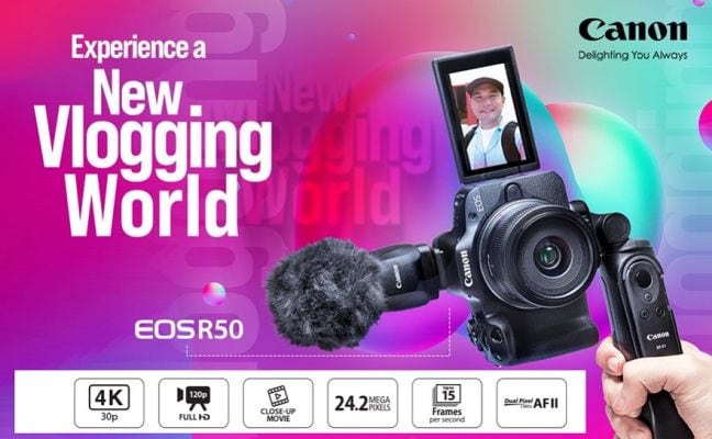 EOS R50 superior image performance, lightweight and compact design form factor makes it an ideal for capturing high-quality vlogs while on the move.