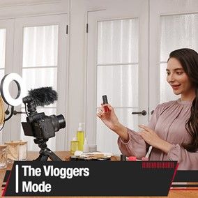 The 'Movie for Close-Up Demos' mode intelligently switches focus from faces to subjects close to the lens, allowing for easier creation of product or item demonstrations for vlogs. The support for focus breathing correction ensures that there are no distracting changes in angle of view that tend to occur during focus transitions while vlogging.